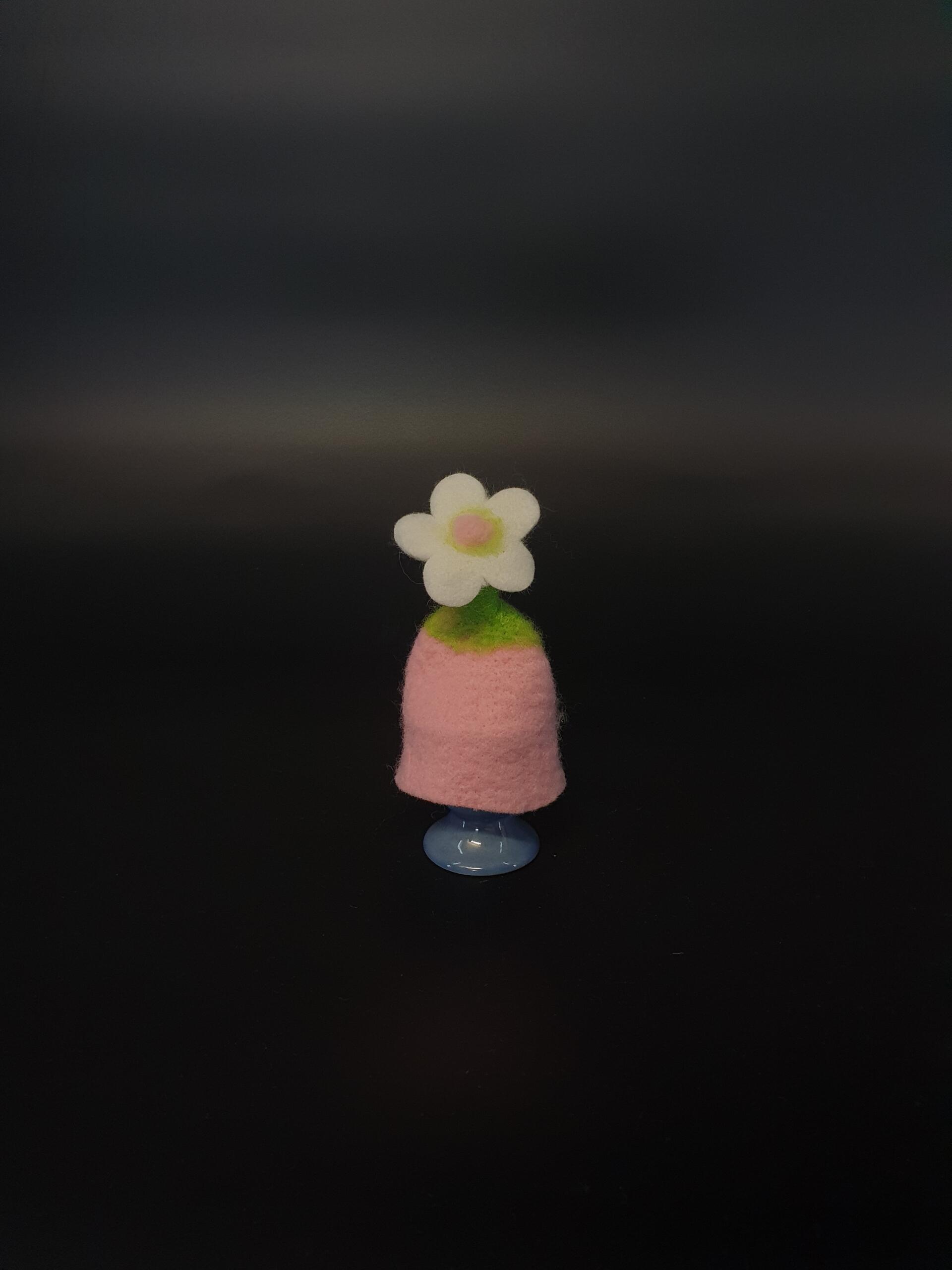 Artikelnummer: Eierwärmer aus Filz, rosa mit weiße Blüte Kategorie:
