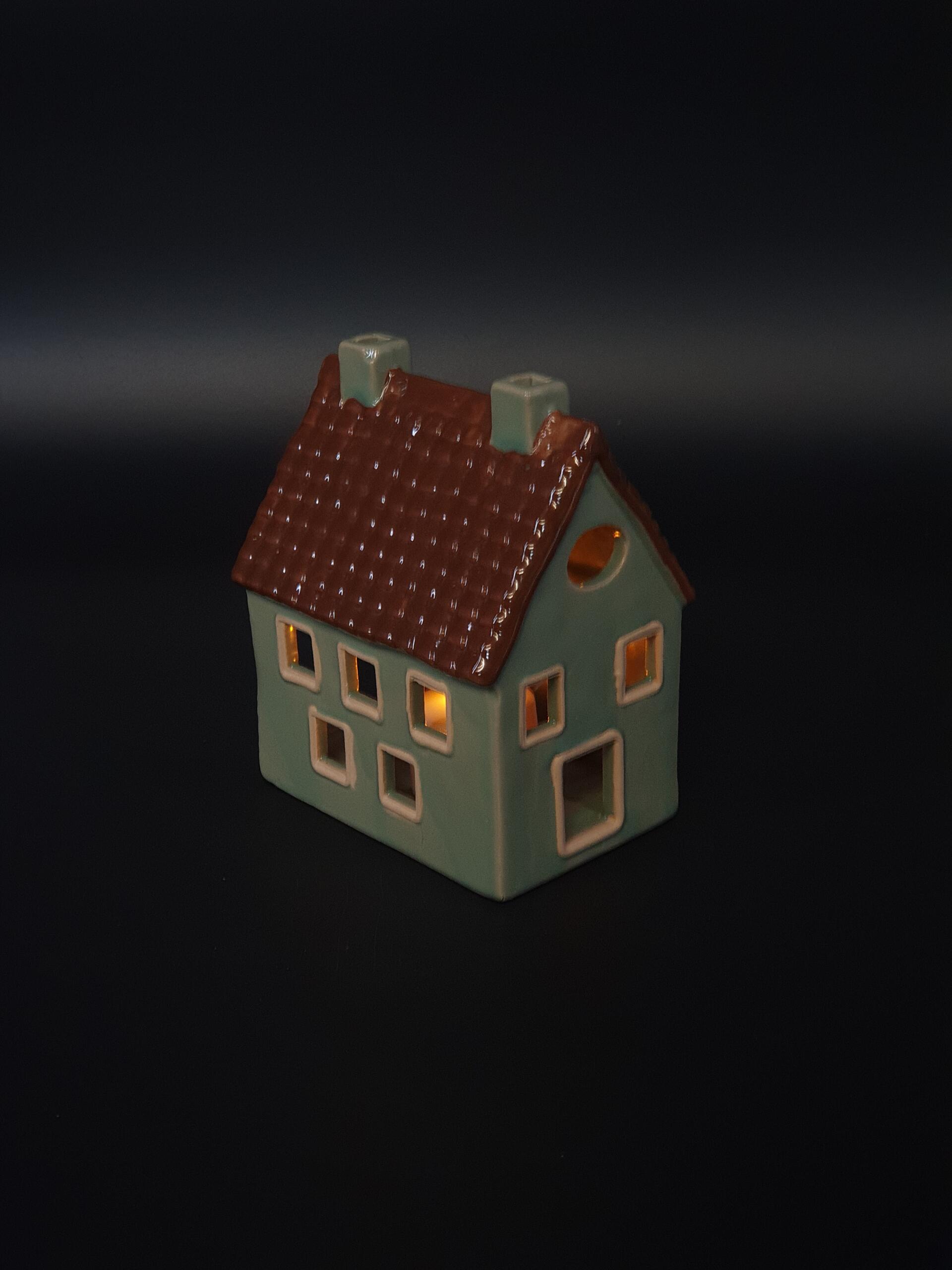 Stilvolles Teelichthäuschen aus glasiertem Keramik